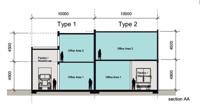 To be constructed warehouse / office facility which provides container access via one (1) roller shutter door.